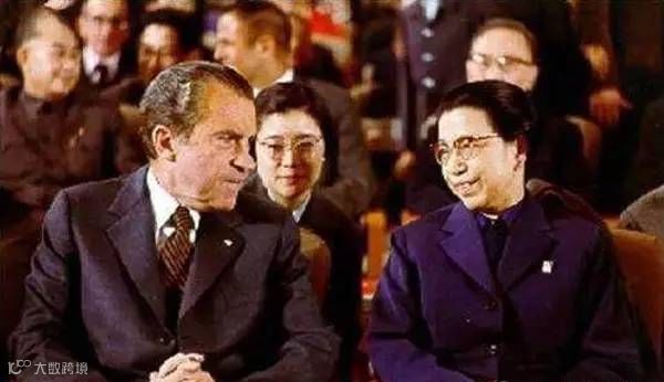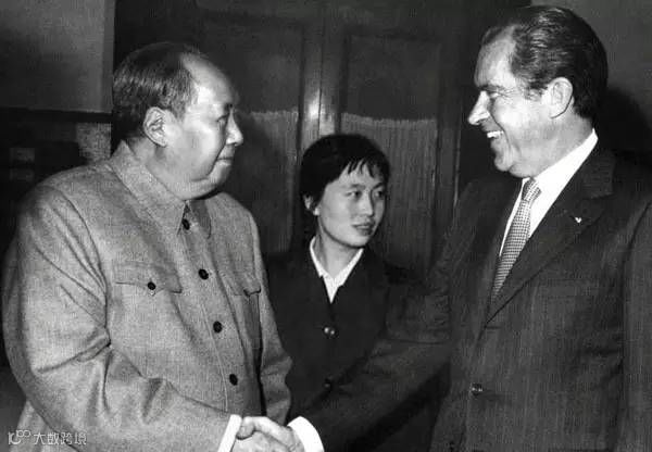 1972年,北京,尼克松访华,江青陪同尼克松观看演出,这是江青第一次在重要的外事活动中露面。