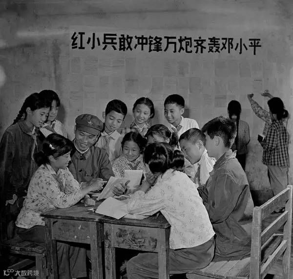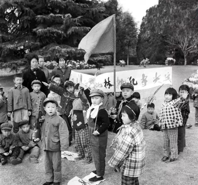 1974年,江苏省南通市某幼儿园里发动小朋友们批林、批孔当尖兵。晓庄/摄。