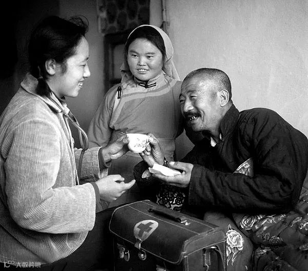 1972年,内蒙古,北京知识青年赤脚医生来到牧民家送医送药。朱宪民/摄。