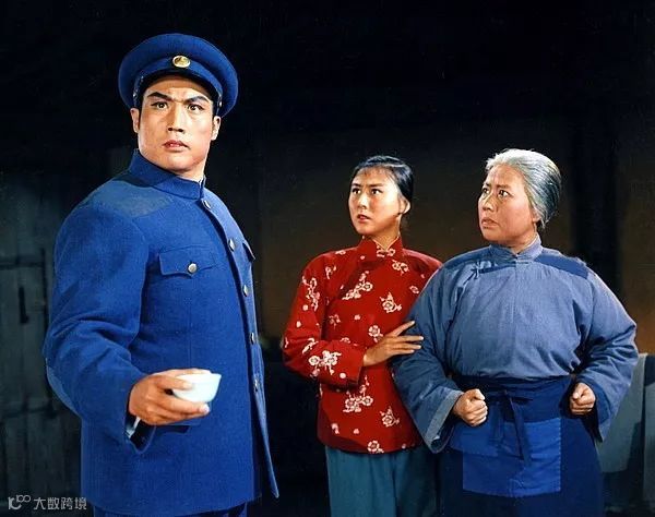 1971年,临行喝妈一碗酒(浩亮饰李玉和,刘长瑜饰李铁梅,高玉倩饰李奶奶),现代京剧《红灯记》剧照。陈娟美/摄。