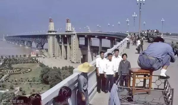 1973年,南京,游客游览长江大桥合影留念。