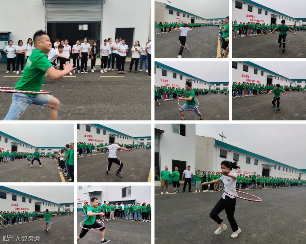 本次比赛共有10支队伍参赛,比赛以呼啦圈接力的形式展开,用时最短者获胜。