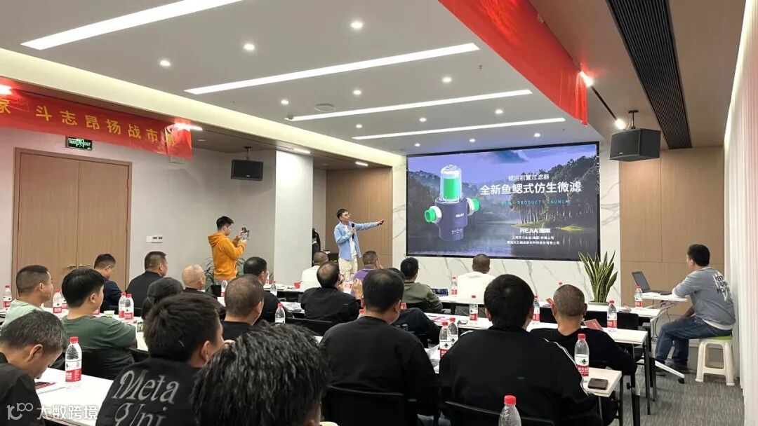 公司研发部负责人详细介绍了鳃网前置过滤器、全屋中央超滤净水器、臻品暗装花洒等产品。该系列产品以高品质、功能齐全,专业安装服务为主要特点。