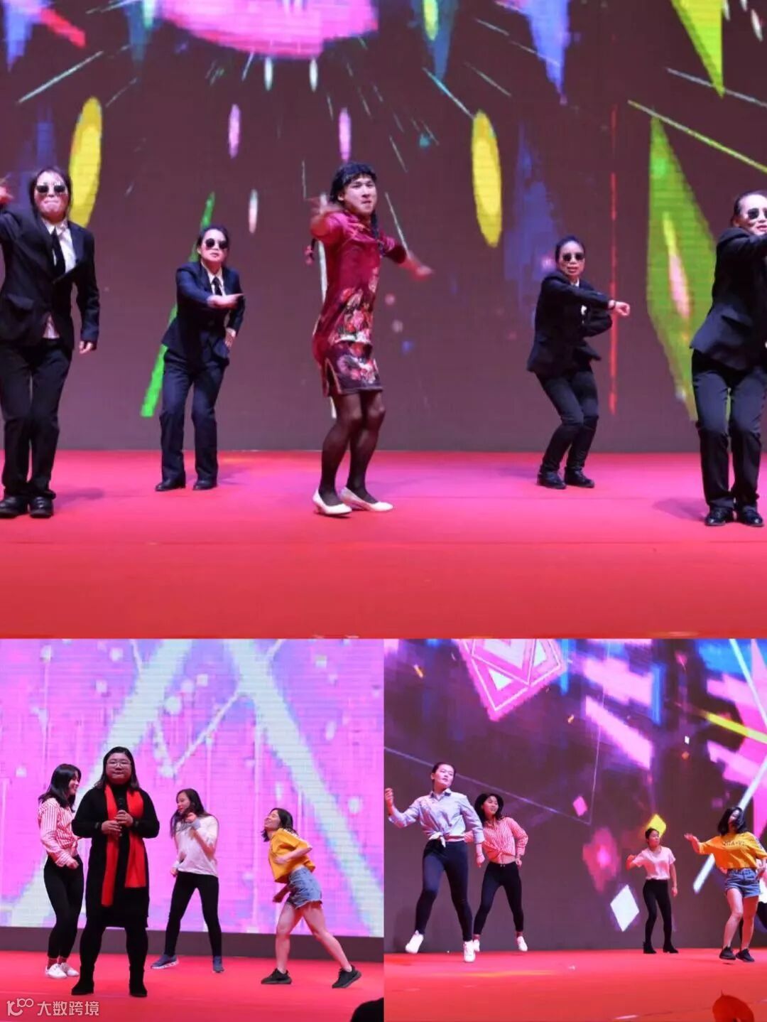 歌舞的律动,再次引爆观众的热情,特别是眼前一亮的反串,既让人捧腹,又让人佩服,佩服的是原来日常严肃严谨的财务中心,居然还有这样一面。