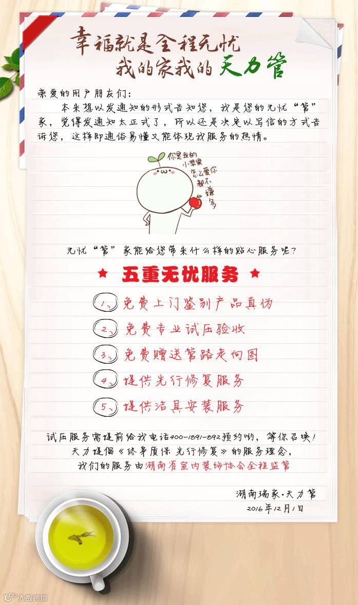 无忧“管”家,写给你的一封家书
