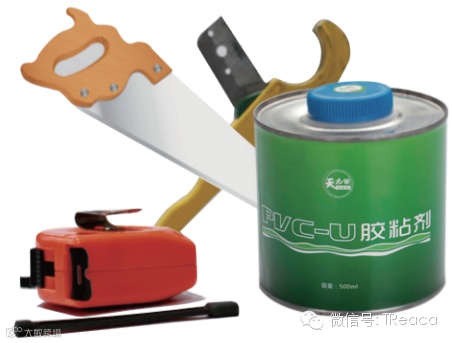 准备PVC胶粘剂、专用剪刀或手锯、毛刷、棉布等辅助材料和工具;