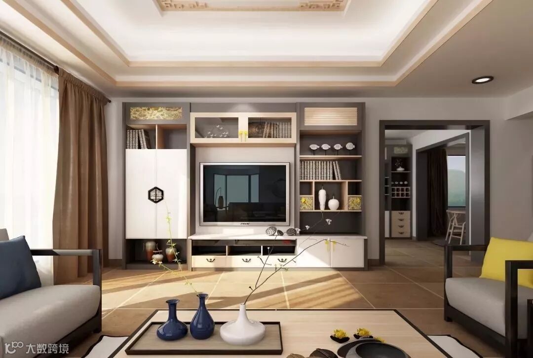 2、看电视一般时间都比较长,所以我们应该选择一种非常舒服的方式来观看,长时间的仰视会导致我们的颈部疲劳,而且还会损坏到颈椎的健康,为了在看电视的时候能够感受到舒适性,一般中式电视柜的高度是以人做在沙发上,眼睛的高度为主。电视屏幕中心略低于我们的基准,让居住者坐在沙发上之后,视线正好落在电视屏幕的中心点为主。