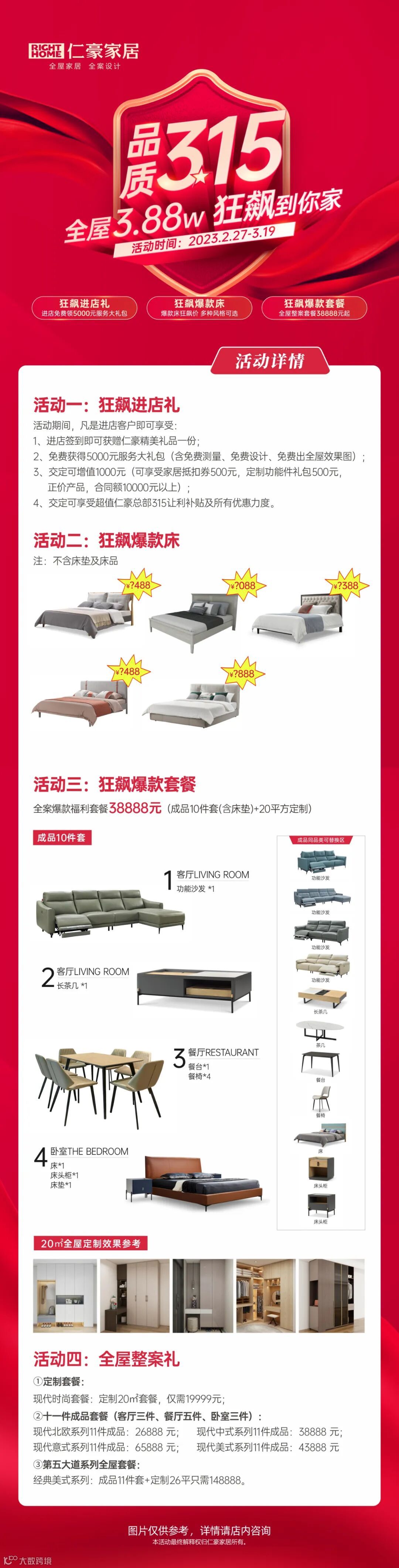 在3月15日即将来临之际,仁豪家居推出3.88W全屋套餐,深度迎合了当前市场消费趋势中“懒人生活”的需求,更使得用户可以凭更为透明的价格和更轻松的方式对家进行全屋全案,满足了大众对性价比高一站式全屋整装家居需求。
