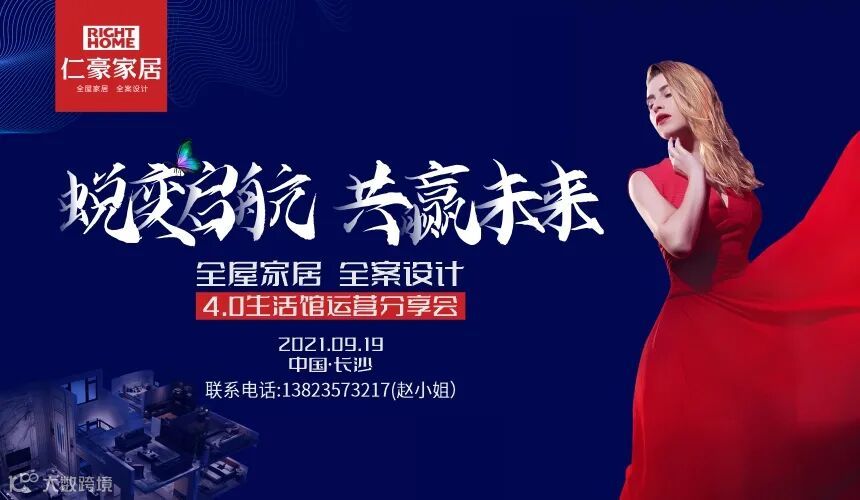 2021年9月19日,仁豪家居首站4.0生活馆运营分享会——“蜕变启航 · 共赢未来”即将在湖南长沙拉开帷幕,大会上将以全新视角,全面解读“全屋家居,全案设计”新运营模式,共同见证集时尚、多元化、高颜值于一体的生活馆成功落地;向参会人员共同分享4.0新店态建设及运营的宝贵经验,进一步推动“全屋家居、全案设计”新定制模式的有效落地,迎接新模式下全新的市场机遇。