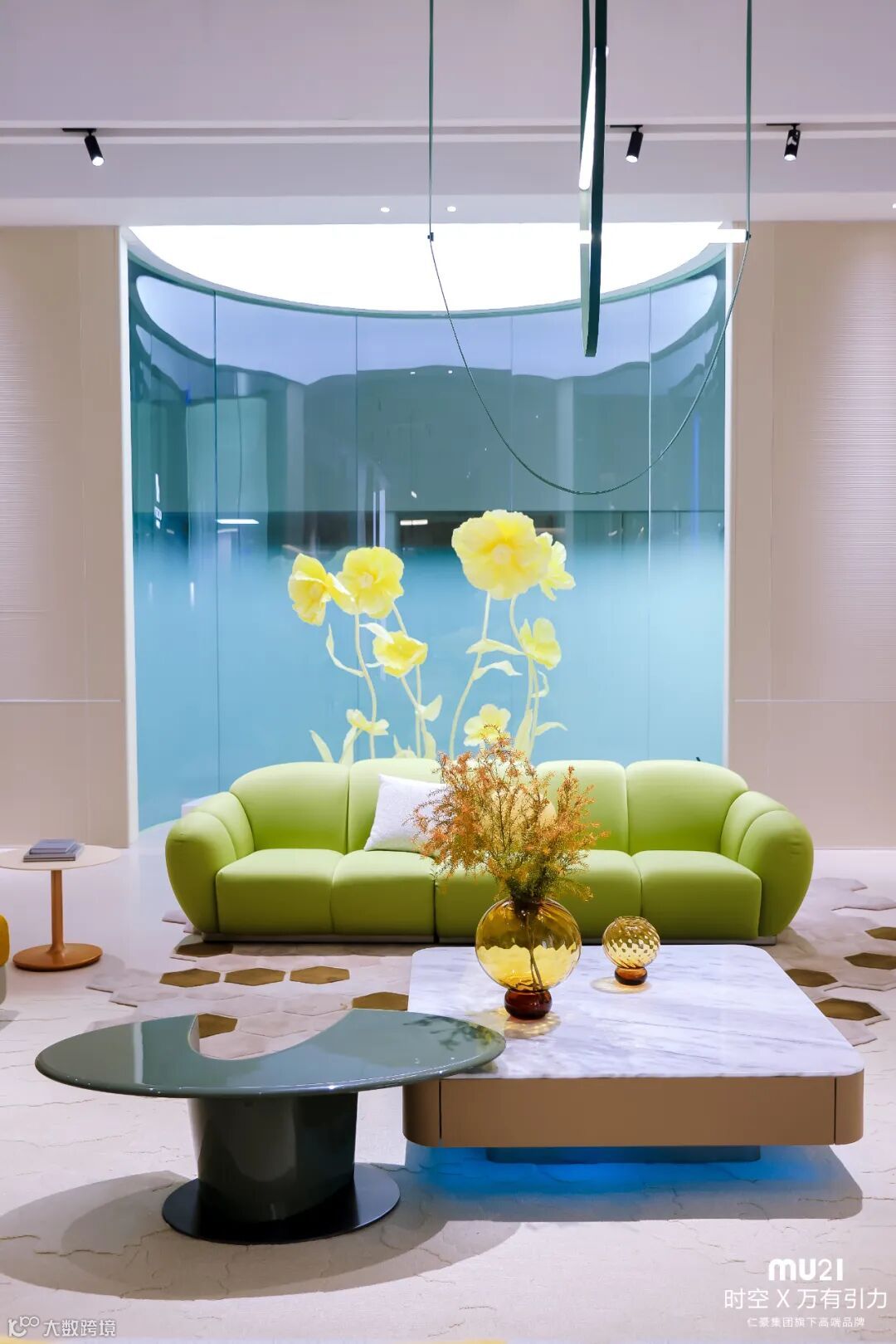 本次展会以“时空×万有引力”为灵感,将潮流与青春融入每一个场景,打造了一场炫酷十足的青春潮流盛宴。从灵感源于时空的材质选取,到灵动线条与清新色彩的和谐搭配,MU21运用青春色彩点缀空间,让室内设计在现代与自然之间找到平衡点,营造出既时尚又温馨的生活场景。