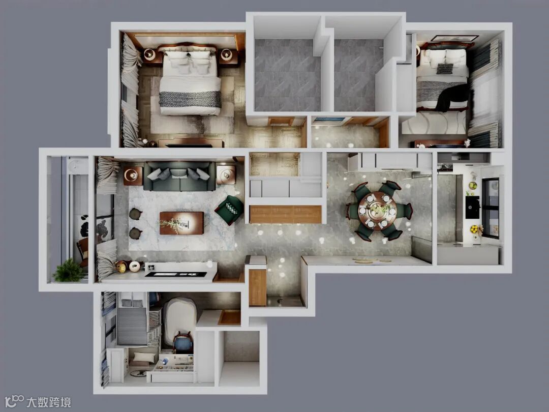 可以说,这里不只有备菜、烘焙的温馨场所,偌大的餐厅也可以是一家人制作美食的乐园。这样的厨房设计往往是商业大平层才有的配置,要么只偶尔出现在200㎡以上的大户型中。而本案中168㎡户型可以做到。