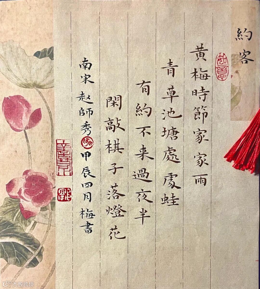 导读:约客作者/赵师秀(南宋) 编辑 红梅凌风黄梅时节家家雨,青草池塘处处蛙。有约不来过夜半,闲敲棋子落灯花。