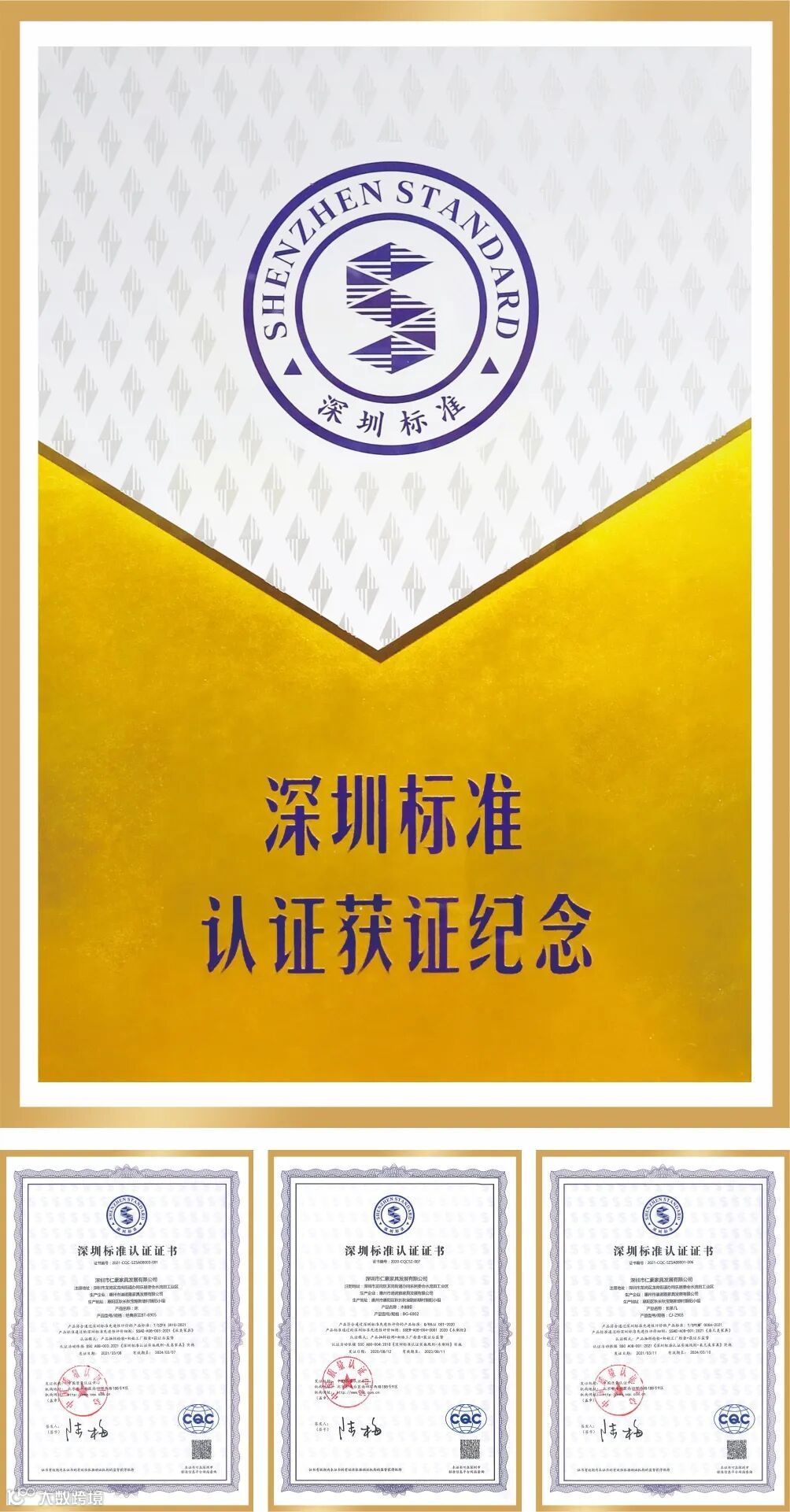 三款产品同时通过深圳标准认证,有效验证了仁豪家居产品“国内领先,国际一流”的质量水平。