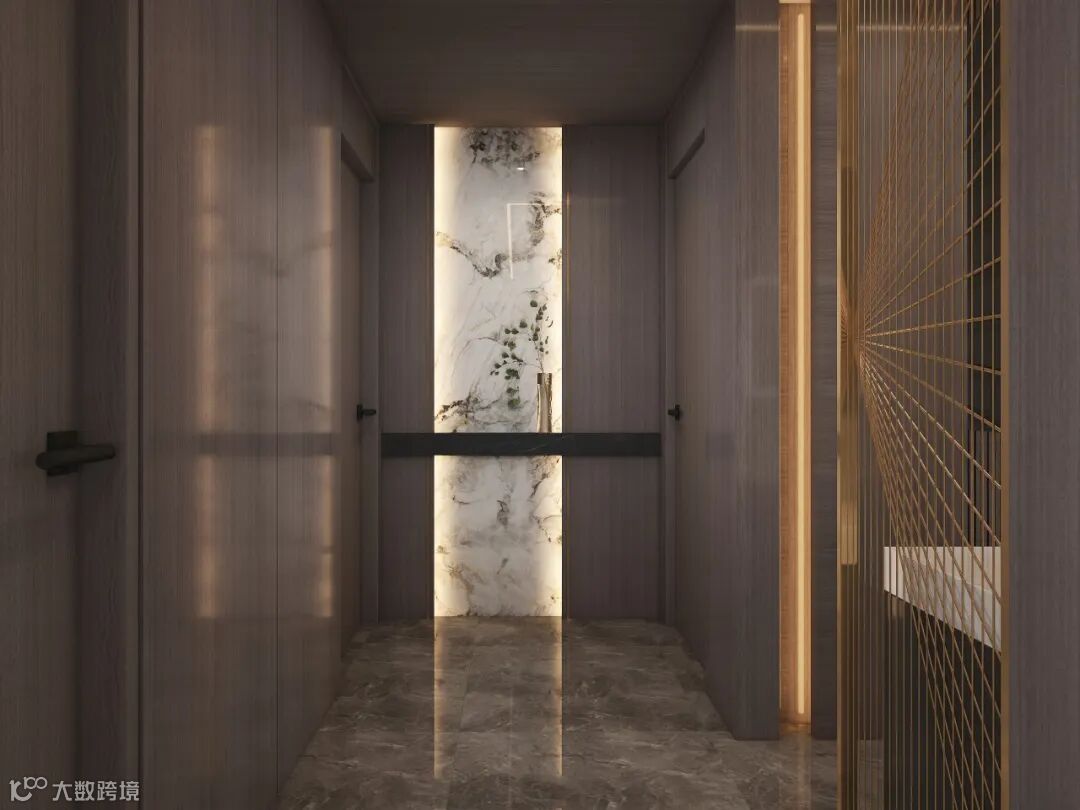 现代轻奢风格的走廊设计热情奔放,有内涵,走廊的设计有些华灯璀璨的感觉,犹如“星光大道”,让人觉得大气庄重,非常有份量。深色的椰林古过道稳重的色调,在行走间感受优雅,有种千帆过尽的平静和淡泊。这是其他风格无法赋予的充满了轻奢、文艺的气息。