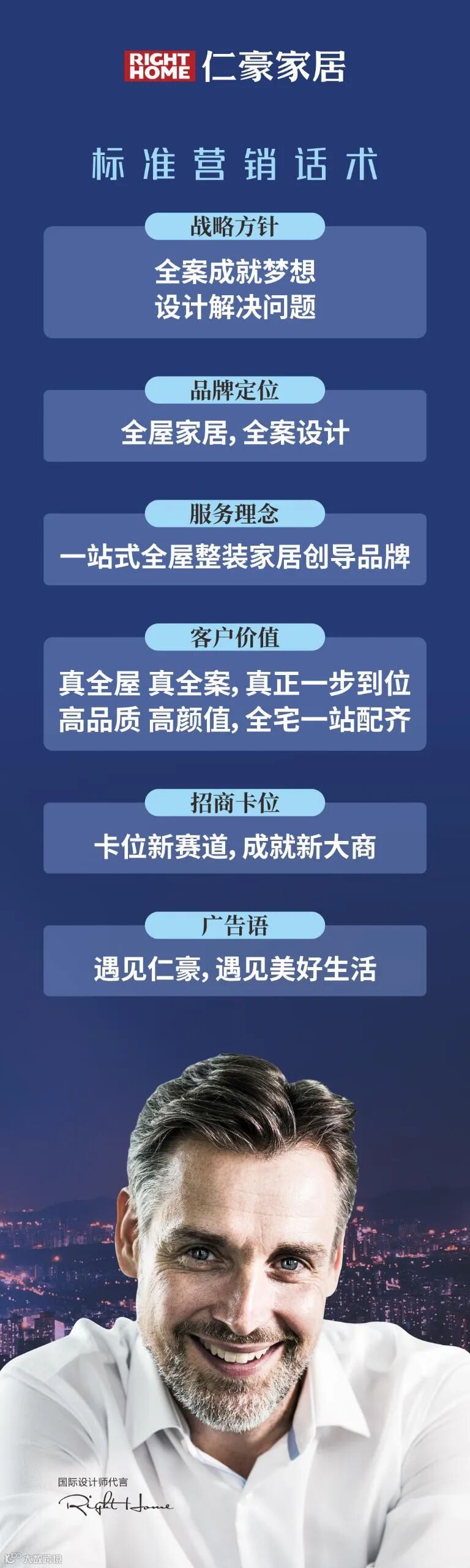 鉴于此,为进一步规范仁豪家居“全屋家居,全案设计”战略模式在终端标准落地,提高品牌知名度,提升终端销售转化,仁豪家居为全国经销商特打造仁豪家居标准终端品牌导入系统,通过仁豪家居标准营销话术、标准终端品牌导入系统、规范终端标准物料等一系列措施,提升仁豪家居终端品牌形象与口碑,有力促进终端店业绩增长。望全国经销商通力合作,严格按照此套标准制作终端品宣物料并展示,同时与仁豪家居总部协调配合,共同推进全屋全案落地,抢占新市场、赢在新赛道。