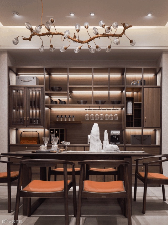 中式风格的主要元素离不开栏栅,只是用于不同符号和造型存在空间,通过设计和搭配传达不同的空间意境,舒缓自然的藏纳于内。“众里寻他千百度,蓦然回首,灯火阑珊处”的人生意境。