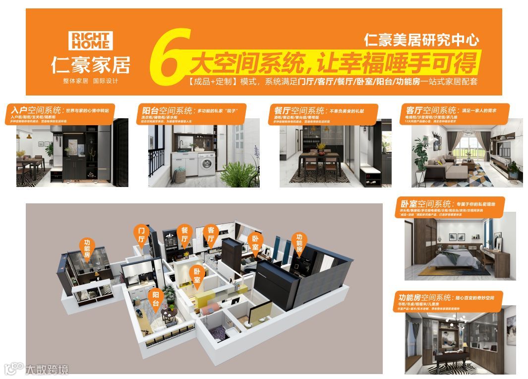 家的每一个空间,都有它不同的使命,需要契合居者的生活习性、兴趣爱好、气质风范。仁豪美居中心深度洞察人们的生活需求,同时针对家庭成员的实际情况,对六大空间进行系统定制,科学布局,让幸福的生活唾手可得。