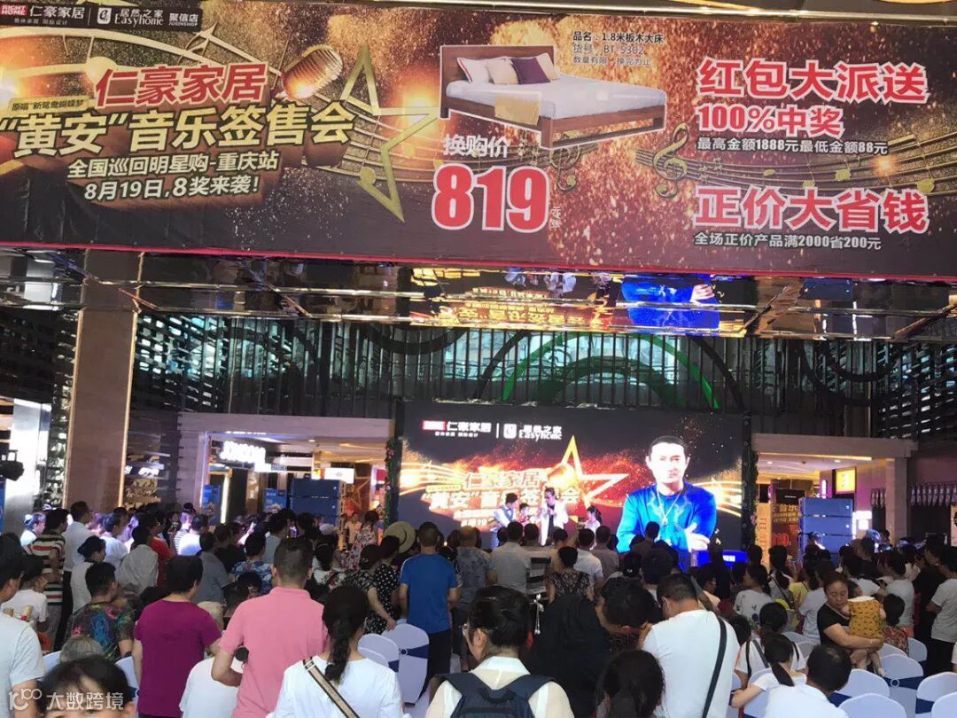 8月19日,20年国际品质家居发展历程的深圳仁豪家居,在重庆(居然之家聚信店)仁豪家居专卖店,成功举办“黄安音乐签售会”。活动现场人潮涌动,场面火爆,造成消费者疯狂抢单。《新鸳鸯蝴蝶梦》原唱歌手黄安现场助阵,通过八重大礼,冰点来袭与粉丝频频互动,点燃了现场的抢购热情,大家倾情参与这场星光闪耀、超级劲爆的家具促销盛宴。