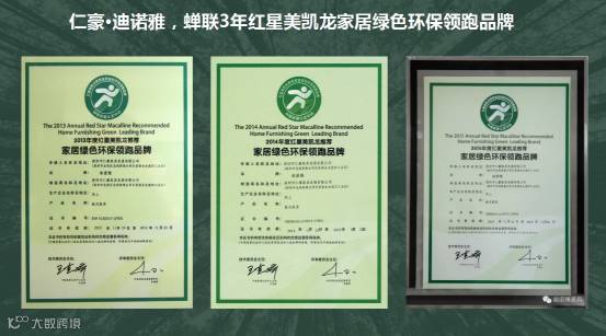 红星美凯龙家居卖场,是整个家居卖场行业中,将消费者体验创新到极致的企业,其多业态、信息化、娱乐化的购物体验,均是从消费者角度出发,为消费者提供一个舒适、时尚的家居购物体验,而近些年,红星更是将绿色环保理念,推上运营战略的首要板块,大力推出“绿色环保领跑家居品牌”环保评审资质。对进驻家居品牌的规模、产品品质、正品供货及环保标准,设立了诸多要求。对于红星美凯龙而言,对消费者负责,严格把控好渠道关卡,亦是对家居企业的帮助。而仁豪居品,以共同的绿色环保理念及优异的绿色环保品质,蝉联三年“红星美凯龙推荐绿色环保领跑家居品牌”称号。