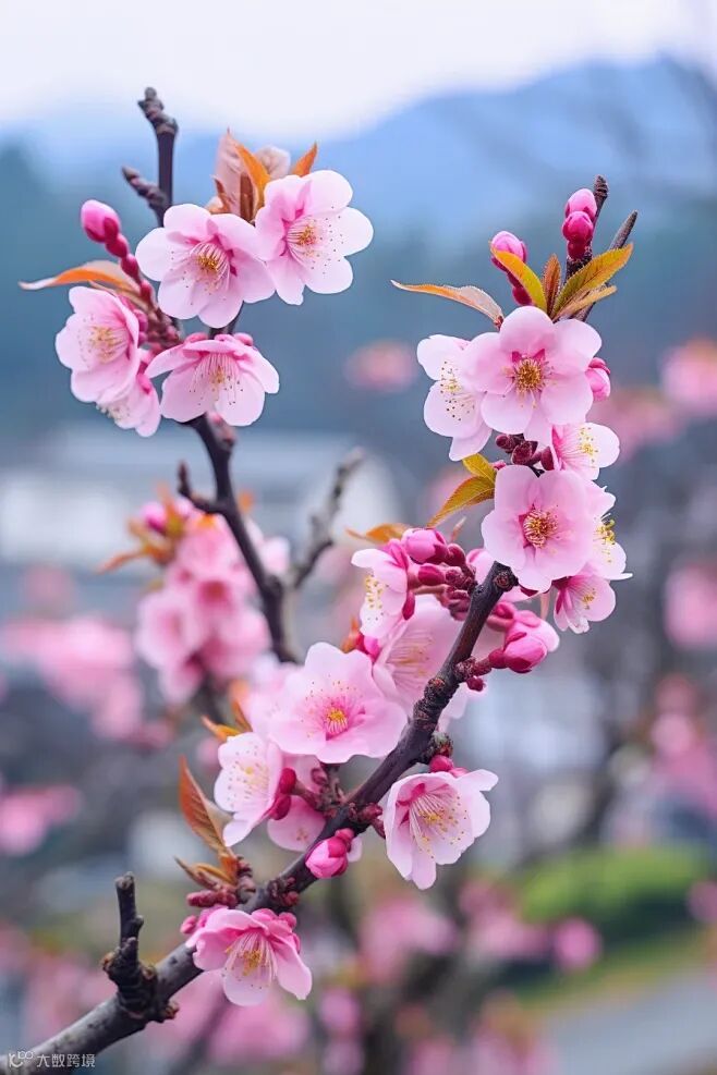 悠然风吹开桃花红