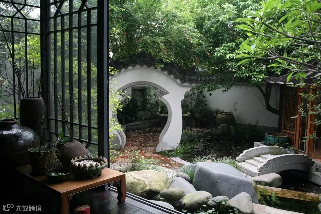 新型中式别墅并不是推翻重建,而是在原有的旧中式庭院建筑、山水、植物有机融合的基础上扩建钢筋水泥的新洋房,比较典型的像大导演冯小刚的房子。此类别墅以浑然天成、悠远空灵为设计初衷,新老结合、中西结合。中式建筑采用障景、借景等虚实结合设计扩大空间感,而西式建筑则运用虚实相立,以实为主,讲究空间设计的时尚感和实用性,因此,新型中式别墅既保留传统中式庭院“崇尚自然,设法自然,虽由人作,宛自天开”的意蕴,又在时尚新颖、典雅大气方面通过西式洋房得以升华。