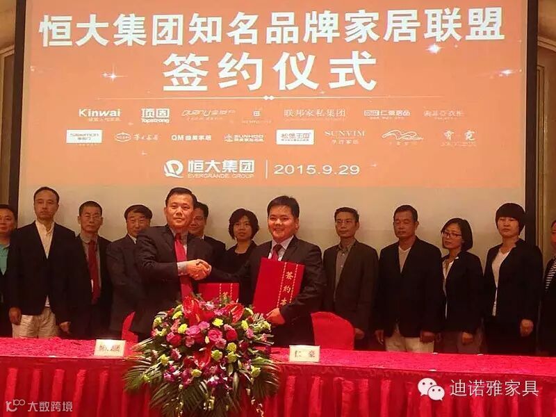9月29日,恒大集团与仁豪居品等15家知名品牌家居企业建立合作联盟,并在广州举行了合作签约仪式。