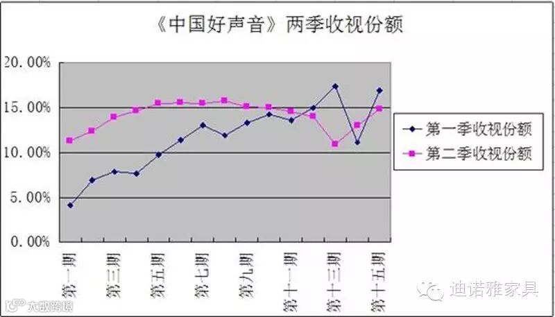 在接下来的第二季中国好声音的节目开播后,中国好声音依旧保持着收视热度。2013 年 7 月 20 号,《中国好声音》第二季首播收视率更飙升至 3.516%,超越当年所有音乐类节目的首播收视,相对于 2012 年来说,2013 年《中国好声音》的总体收视情况又有了新的提升!