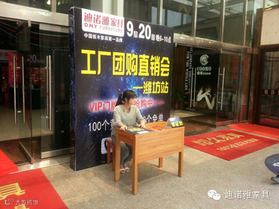 截止今天上午,山东潍坊迪诺雅店铺所有的店面布置及商场内外的广告全部都已到位,店面内的活动氛围非常浓厚,在活动前期已经吸引力了大量的顾客前来进店咨询有关我们活动的相关内容。同时无论是在店面里的宣传还是在小区业主中间的宣传,迪诺雅家具的工作人员的饱满激情,都引来了很多顾客的咨询询问。