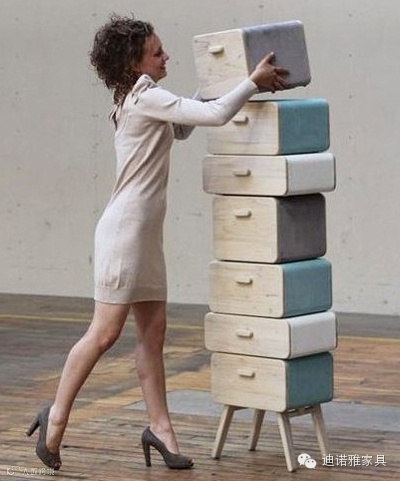 Oturakast是由多层抽屉组合而成,每一个抽屉还有其自身的安装的可折叠腿脚,节约房屋内的占用空间,很容易转变成为客人需要的坐凳。Oturakast橱柜的设计灵感来自她的土耳其姻亲,它用简约的模块式实用造型为我们带来了一份清新的感觉。