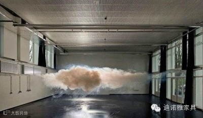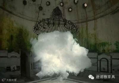 、湿度及光线都控制得非常细致的空间里,利用起雾机来制造云的效果,让云飘进房间里停留一下,这样浪漫的情节真实的在艺术家的创作下实现了。