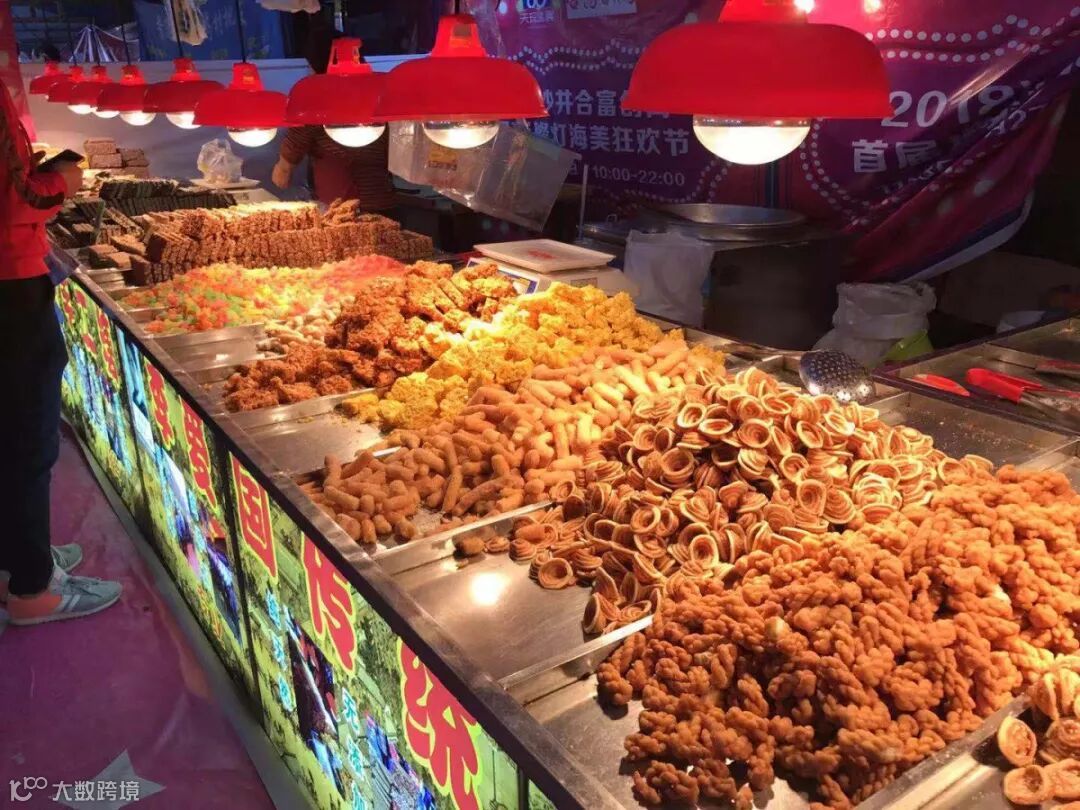 各式各样的琳琅满目的小吃已经摆放出来