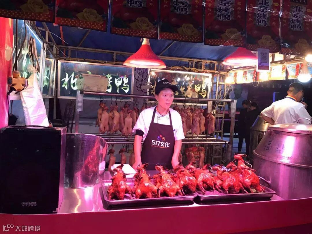 一排排吊在炉子旁精心腌制好的北京烤鸭是本次美食节不可错过的一道美食。