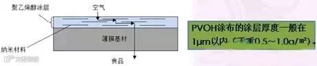 为了使得PVOH涂料可以直接应用于涂布,市场上已有技术通过助剂将其高分子链上的部分羟基屏蔽,然后在涂料中添加纳米材料,使其受环境湿度影响小,应用涂布技术制成涂布膜,然后PVOH 涂层上进行印刷复合,一般应用于高糖量、高油脂类以及坚果食品。