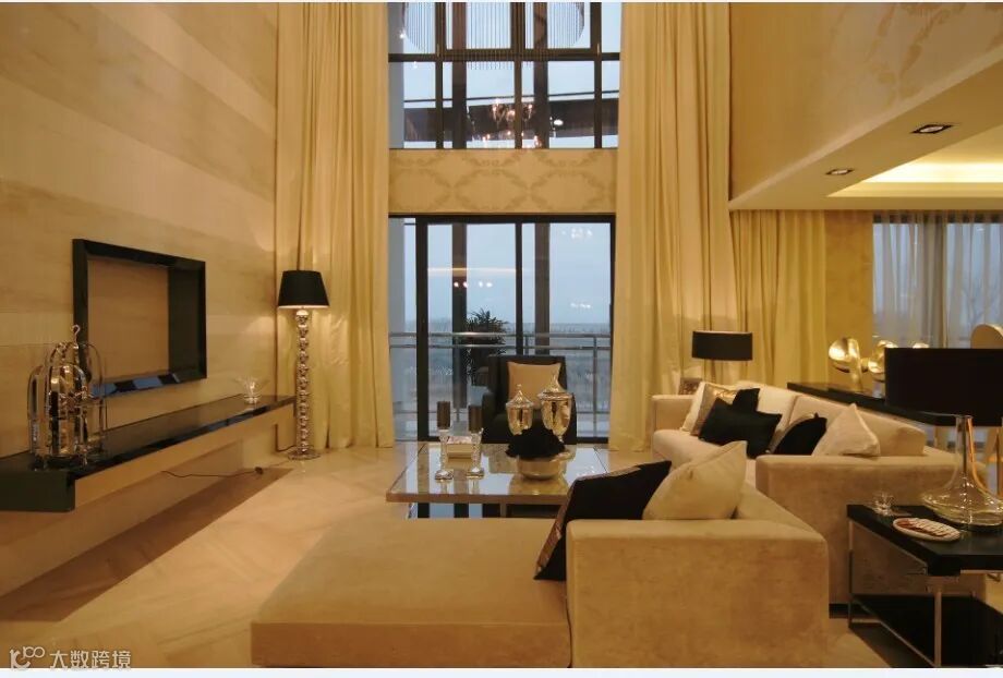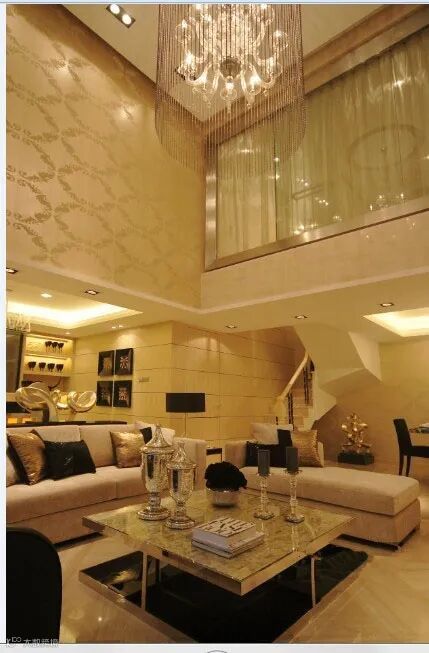 想要打造华丽感的一个经典物件就是:一盏华丽的吊灯!在硬装方面可能都是基础的、较为低调的设计。家具方面也是长青的基础款。在华丽的大吊灯衬托下,整个空间奢华感提升了。但视觉上又没有冗余感。少即是多。