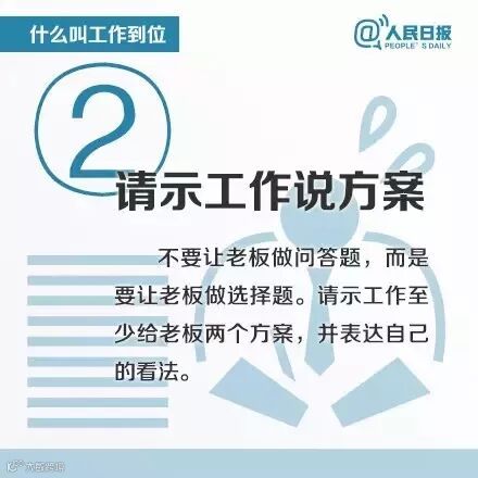 不要让老板做问答题,而是要让老板做选择题。请示工作至少保证给老板两个方案,并表达自己的看法。