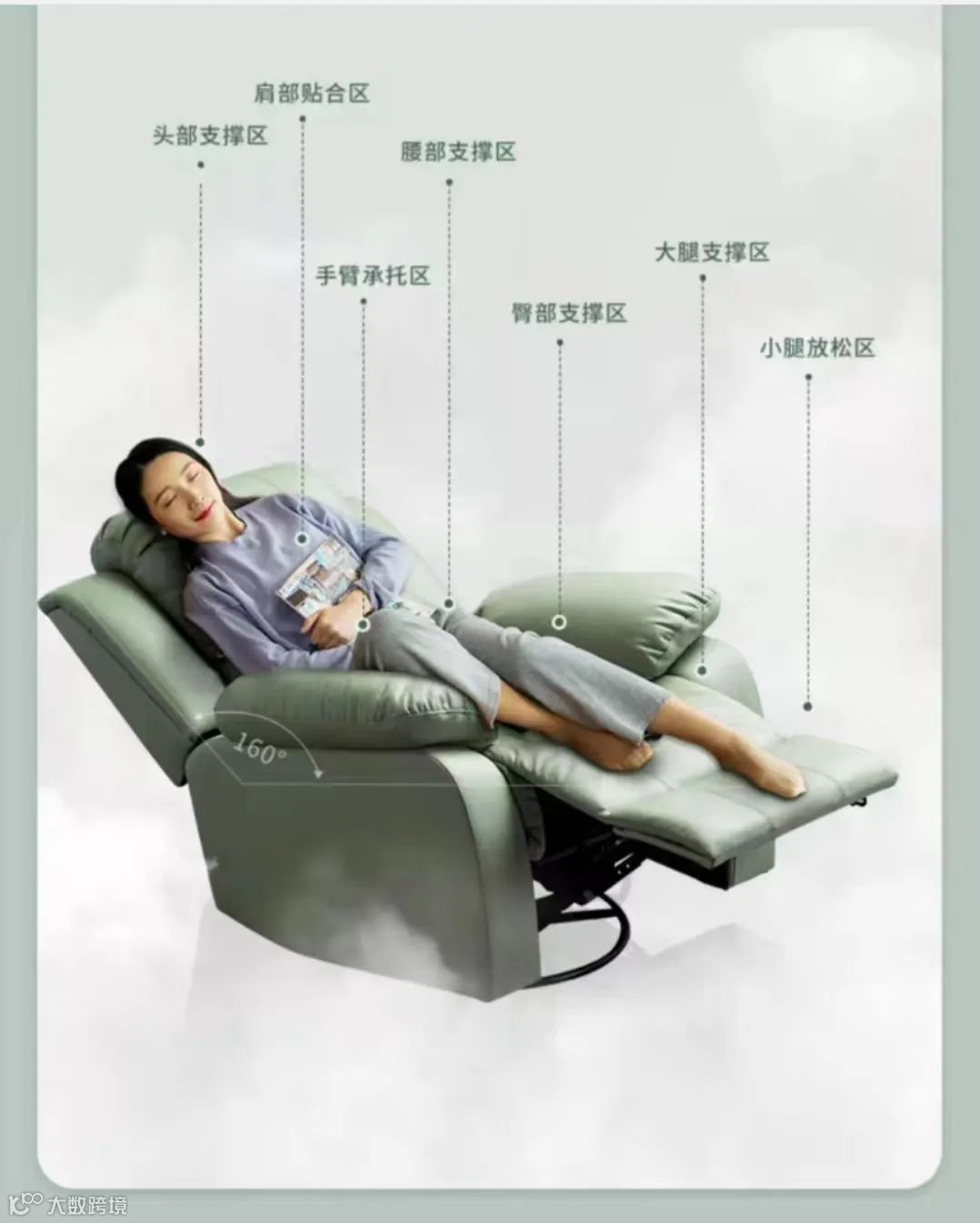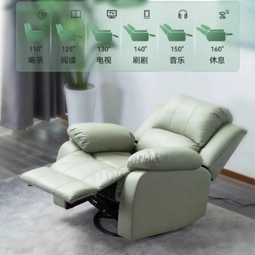沙发360度可以旋转,可摇可转。110度到160的大角度调节范围。