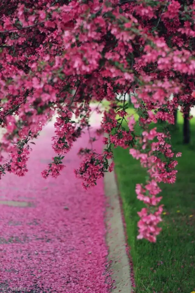打一汪落红里走过
