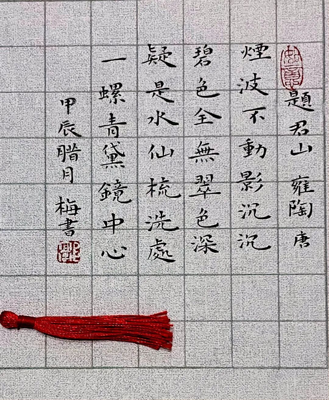 洞庭君山大概是水中女仙居住梳洗的地方吧?这水中倒影的君山,很像镜中女仙青色的螺髻。