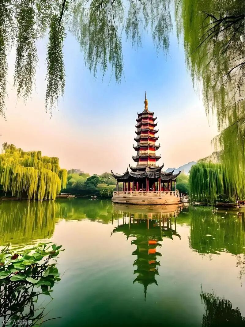 百花凋零之后西湖的景致依然很美,残花轻盈飘落,点点残红在纷杂的枝叶间分外醒目,飞扬的柳絮好似细雨迷蒙。垂落的杨柳纵横交杂,在和风中随风飘荡,摇曳多姿。