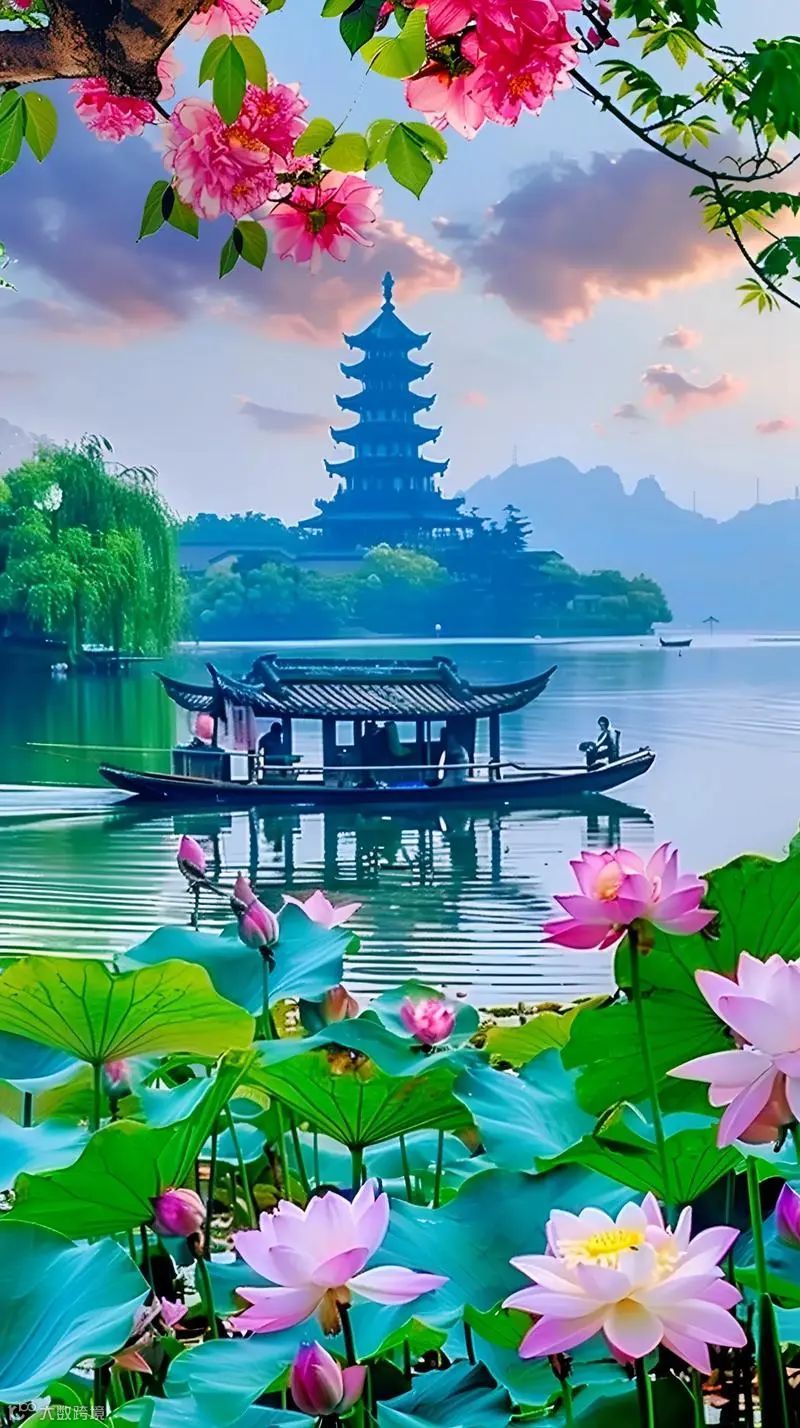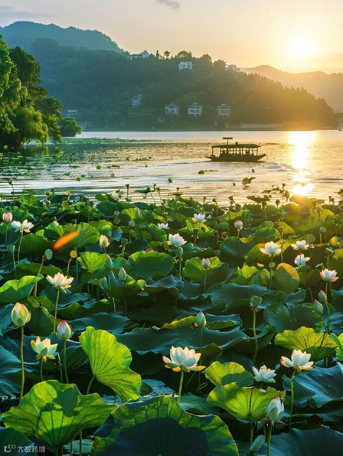 彩画游船驶进荷花深处,酒杯上也沾染了荷花的清香。傍晚下起了朦胧微雨,在一片笙歌中,船儿载着醉倒的游客归去。