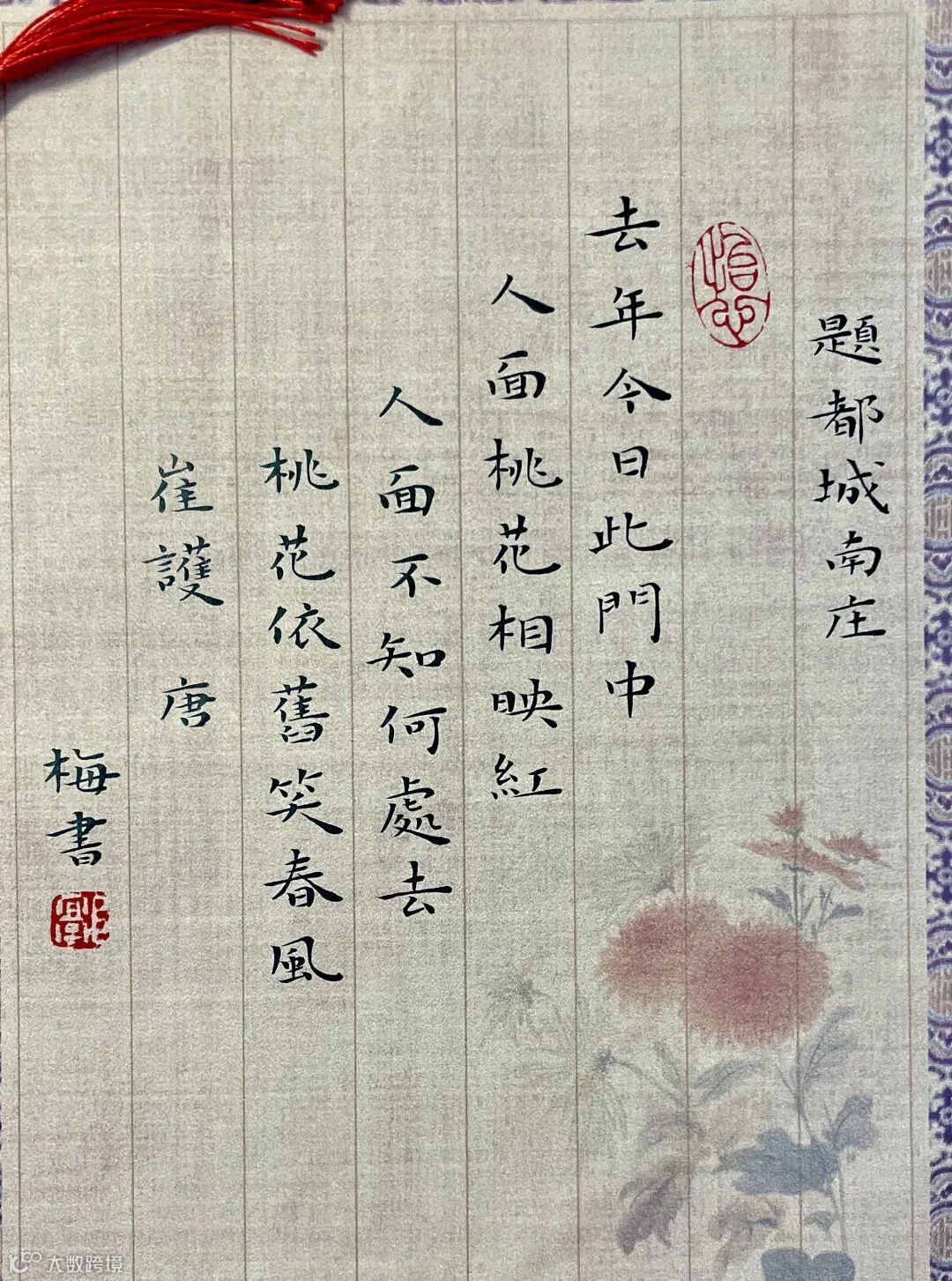 作者简介:崔护(772年—846年),字殷功,唐代博陵(今河北定州)人,生平事迹不详,唐代诗人。其诗诗风精练婉丽,语极清新。《全唐诗》存诗六首,皆是佳作,尤以《题都城南庄》流传最广,脍炙人口,有目共赏。该诗以“人面桃花,物是人非”这样一个看似简单的人生经历,道出了千万人都似曾有过的共同生活体验,为诗人赢得了不朽的诗名。