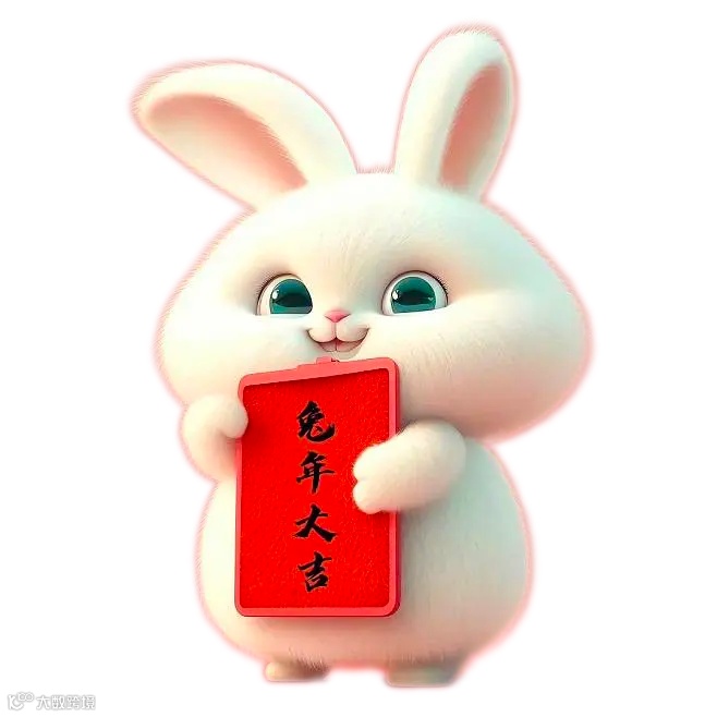 玉兔驮着大红的福字,走进庭院