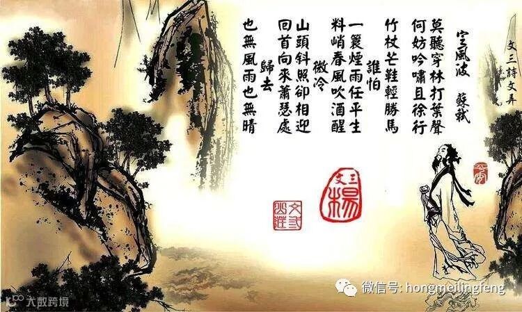 春风微凉,将我的酒意吹醒,寒意初上,山头初晴的斜阳却应时相迎。回头望一眼走过来遇到风雨的地方,回去吧,对我来说,既无所谓风雨,也无所谓天晴。