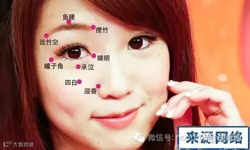 4.阳白穴:在前额部,当瞳孔直上,眉上1寸。