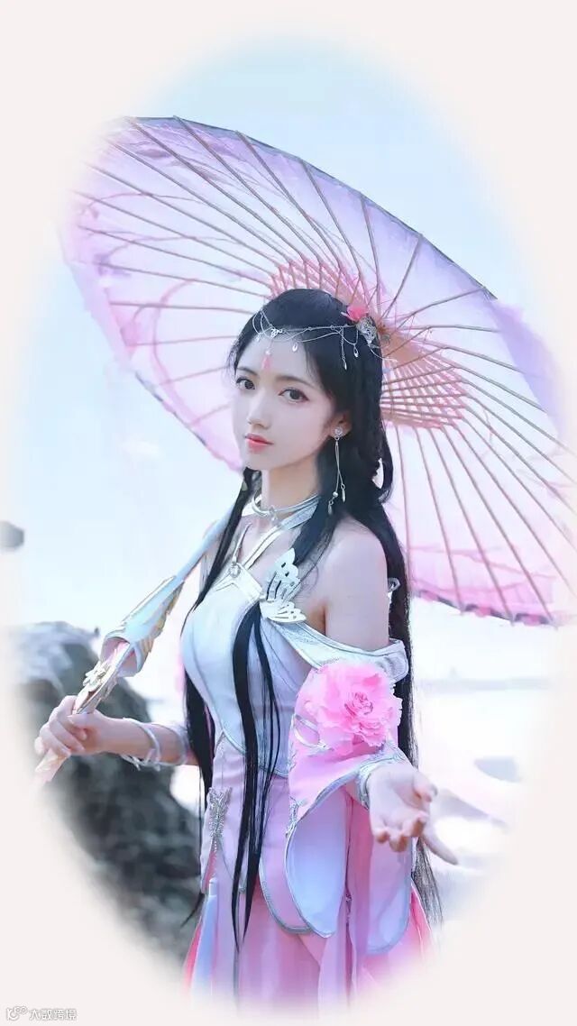一把粉红色的油纸伞