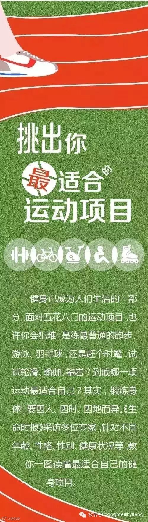 早起晨跑、下班健身、周末打球……运动已经成为很多人生活中必不可少的一部分。但面对五花八门的运动项目,也许你会犯难:是选择最普通的跑步、游泳、羽毛球呢,还是赶个时髦,试试轮滑、瑜伽、攀岩?到底哪项运动最适合自己?