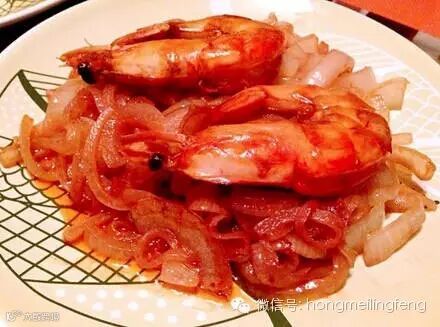 6)放入之前煎好的虾,翻炒几下,沿着锅边倒入(不要直接倒在菜上)一大勺、约15ml红葡萄酒,根据自己口味加盐调味,翻炒几下,至汤汁全部收干即可出锅。