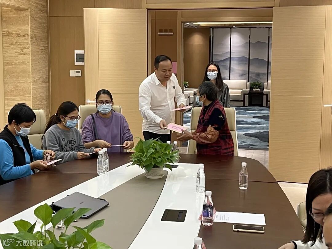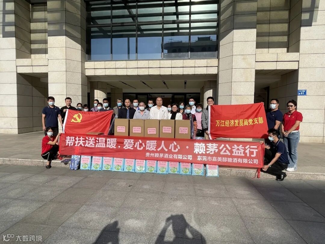 2021年12月8日下午,在万江街道办事处,赖茅东莞经销商嘉美醇酒业联合东莞市万江街道总工会和万江区经济发展局开展企业慰问困难职工家庭公益活动。