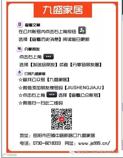 如果您还没有关注我,请点击图片上面日期右边【九盛家居】再点击“关注”,就可关注我!我们每天将会与您分享世界上最精华最精彩的资讯!
