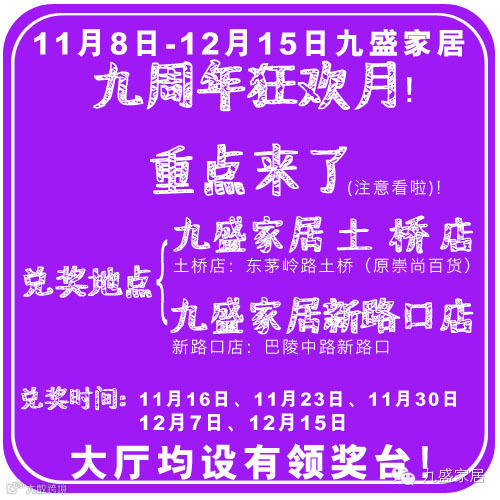 九盛家居九周年狂欢月之一:微信感恩送豪礼!